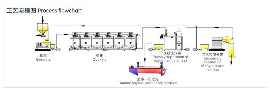 熟漿工藝是指將磨好的豆糊先進行完全的加熱處理后,再對熟豆糊進行豆漿和豆渣分離的制漿方法;